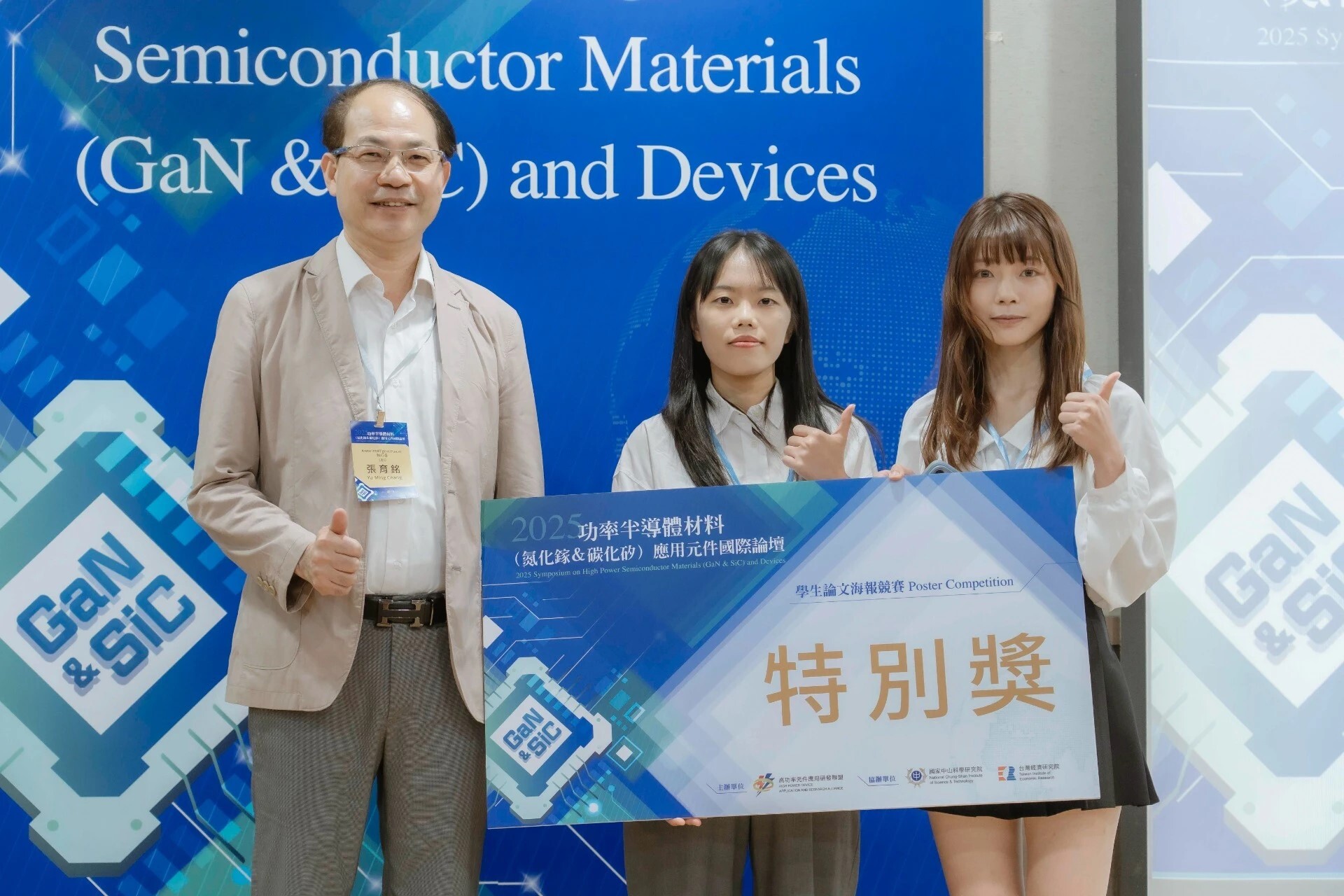 賀!柯文政教授指導學生朱珍伶、柏韋彤 、施涵心參加"2025功率半導體材料(氮化鎵&碳化矽)應用元件國際論壇"學生論文海報競賽 榮獲特別獎